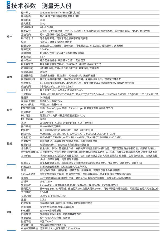 iBoat BS15智能無人測量船搭載中海達(dá)8140P小型化多波束測深系統(tǒng),可輕松實現(xiàn)內(nèi)陸湖泊、河流、水庫等水下地形地貌高精度測量。船體采用碳纖維和凱夫拉防彈布高強(qiáng)度復(fù)合防腐蝕材料打造,輕盈堅固,三體M船型獨特設(shè)計,航行更平穩(wěn)。配備高精度定位定向系統(tǒng)和內(nèi)置慣導(dǎo)雙系統(tǒng)組合導(dǎo)航,無懼衛(wèi)星遮擋,確保航行精度。船尾加裝雙側(cè)副翼推進(jìn)器,多種航行模式輕松切換,適應(yīng)各種復(fù)雜流域環(huán)境。